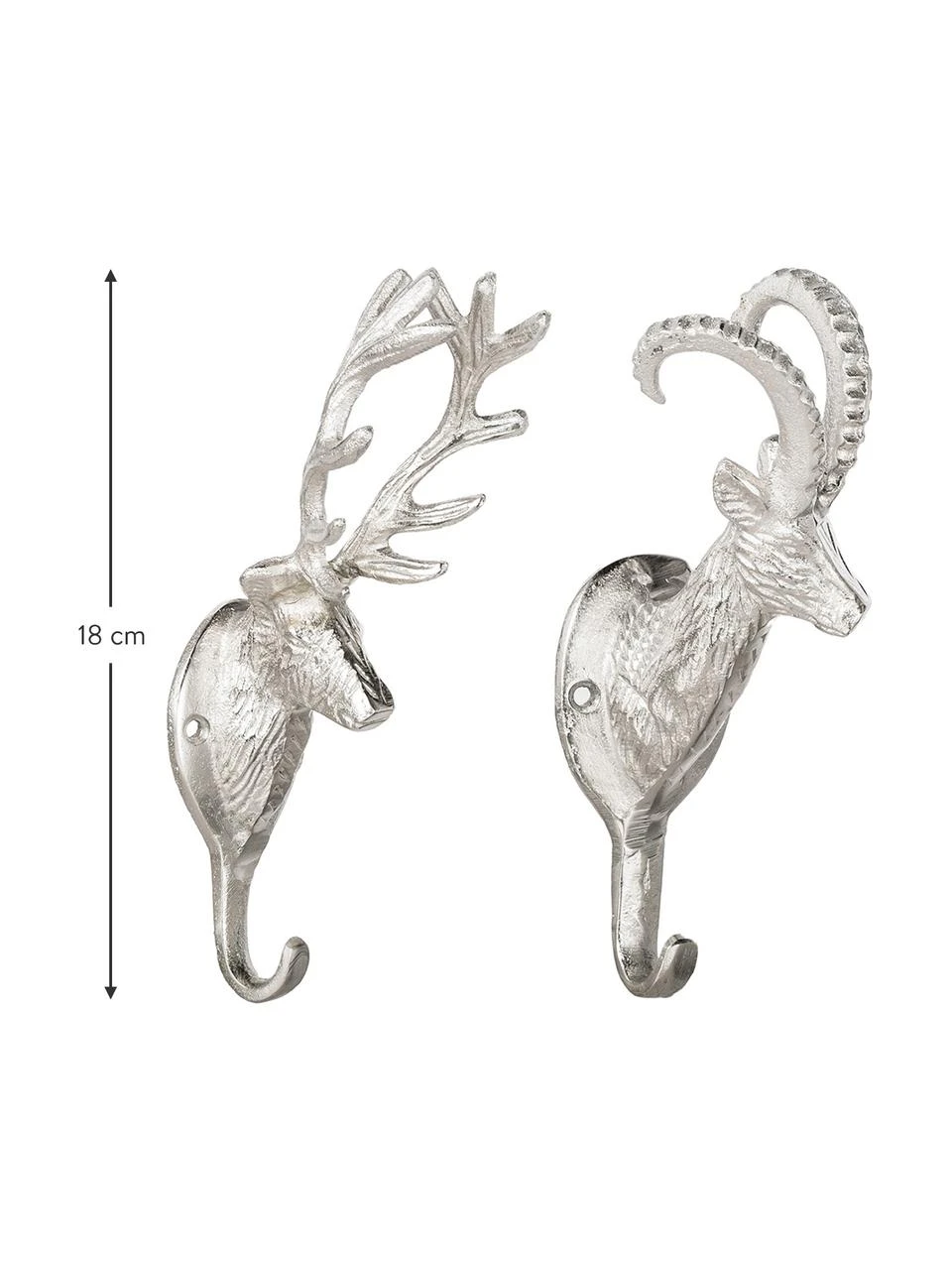 2 crochets muraux au design de bouquetin et de cerf