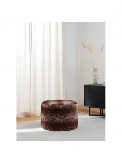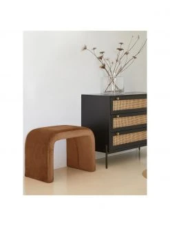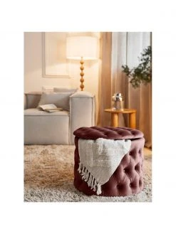 Westwing Collection Pouf coffre XL en velours brun rouillé Chiara, Ø 70 x haut. 42 cm