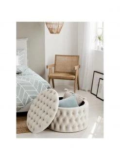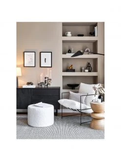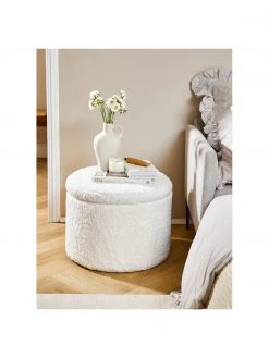 Westwing Collection Grand tabouret avec coffre tissu bouclé blanc Alida, Ø 50 x haut. 42 cm