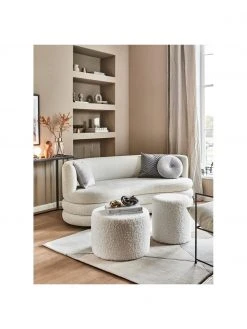 Alex Rivière x Westwing Collection Tabouret tissu bouclé beige clair Yves, larg. 43 x haut. 47 cm