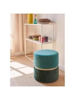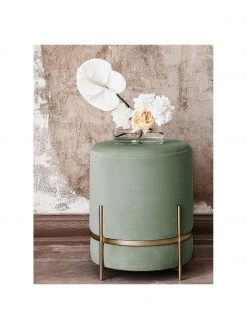 Westwing Collection Tabouret velours vert olive avec rangement Winou, larg. 50 x haut. 48 cm