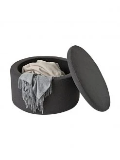 Westwing Collection Pouf avec rangement tissu bouclé gris foncé Winou, larg. 50 x haut. 48 cm
