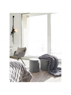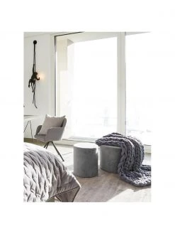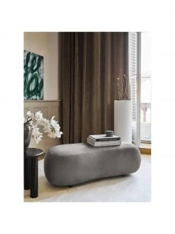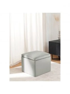 Westwing Collection Pouf avec rangement velours gris clair Winou, larg. 50 x haut. 48 cm