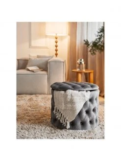 Westwing Collection Grand tabouret rond velours gris foncé avec rangement Chiara, Ø 70 x haut. 42 cm
