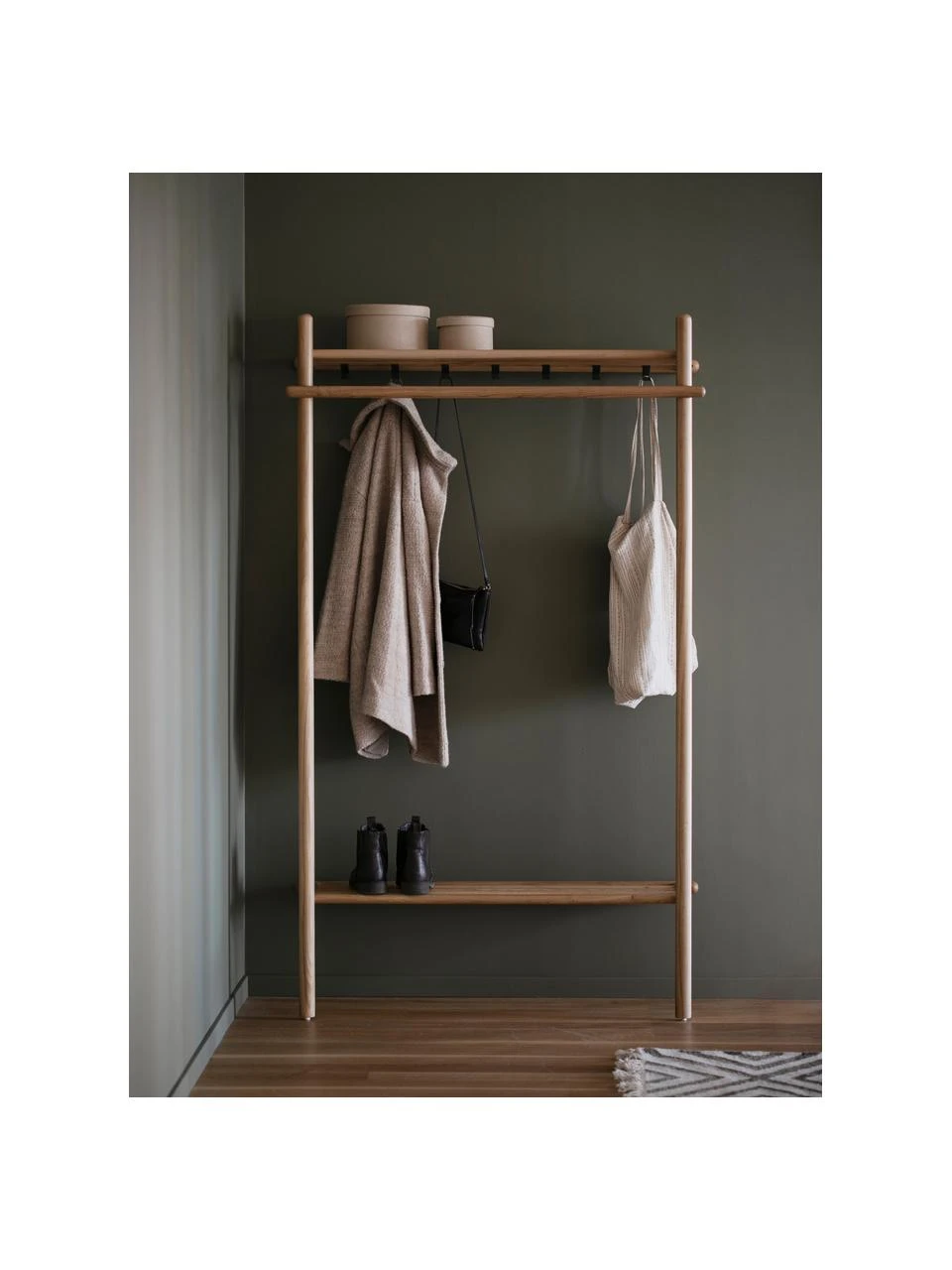 – Meuble d’entrée avec 1 tringle à vêtements, 2 tablettes et 6 crochets