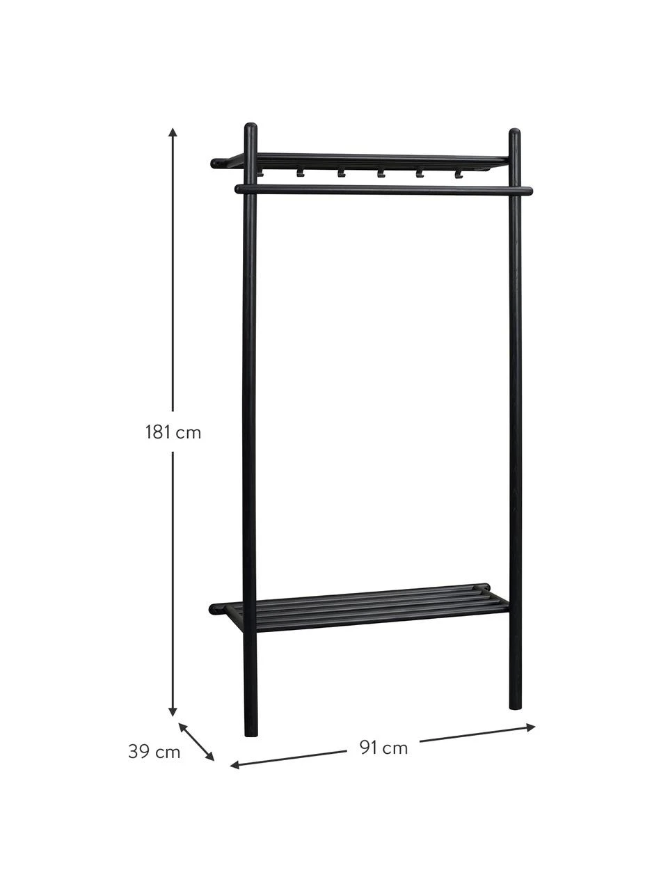 – Meuble d’entrée avec 1 tringle à vêtements, 2 tablettes et 6 crochets