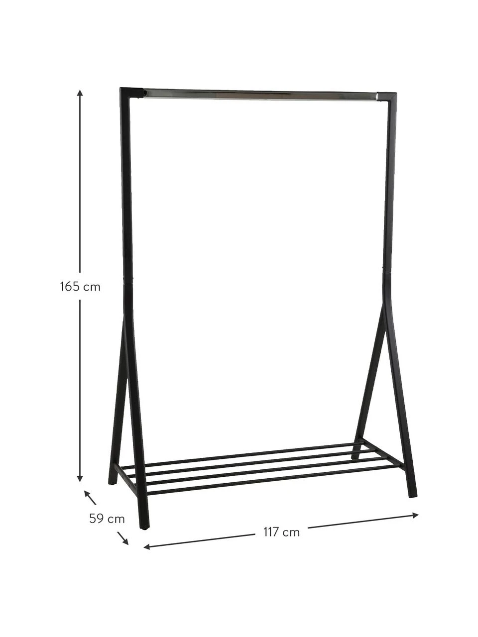 Portemanteau mural en métal noir Quinn, larg. 50 x long. 13 cm