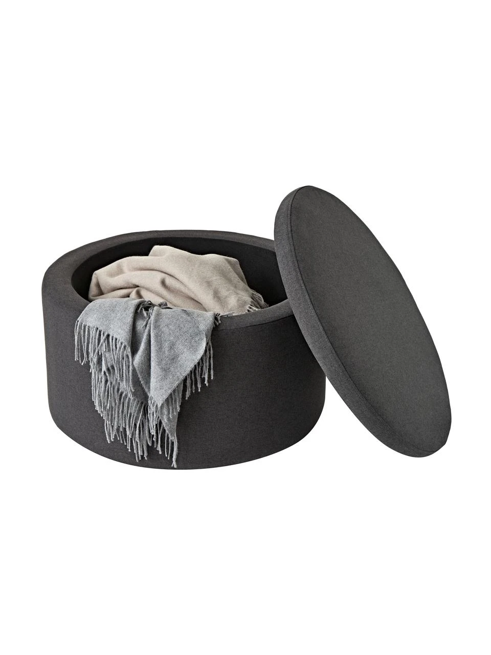 Que ce soit pour poser ses pieds ou comme assise supplémentaire pour invités : le tabouret Alida est polyvalent et offre beaucoup d’espace de rangement. Couvertures, coussins et vêtements disparaissent sous le couvercle en un rien de temps.