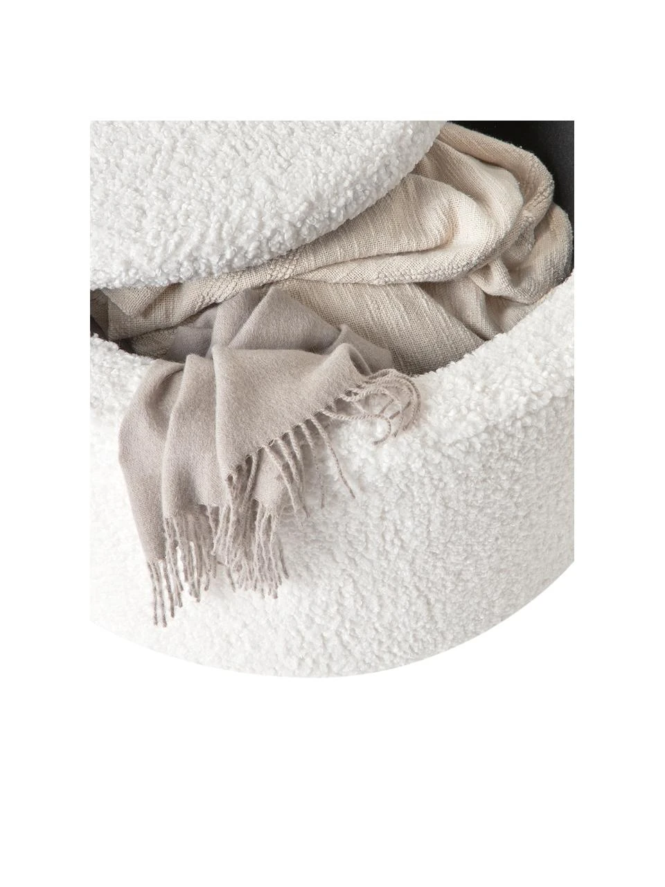 – Tabouret en tissu bouclé avec espace de rangement