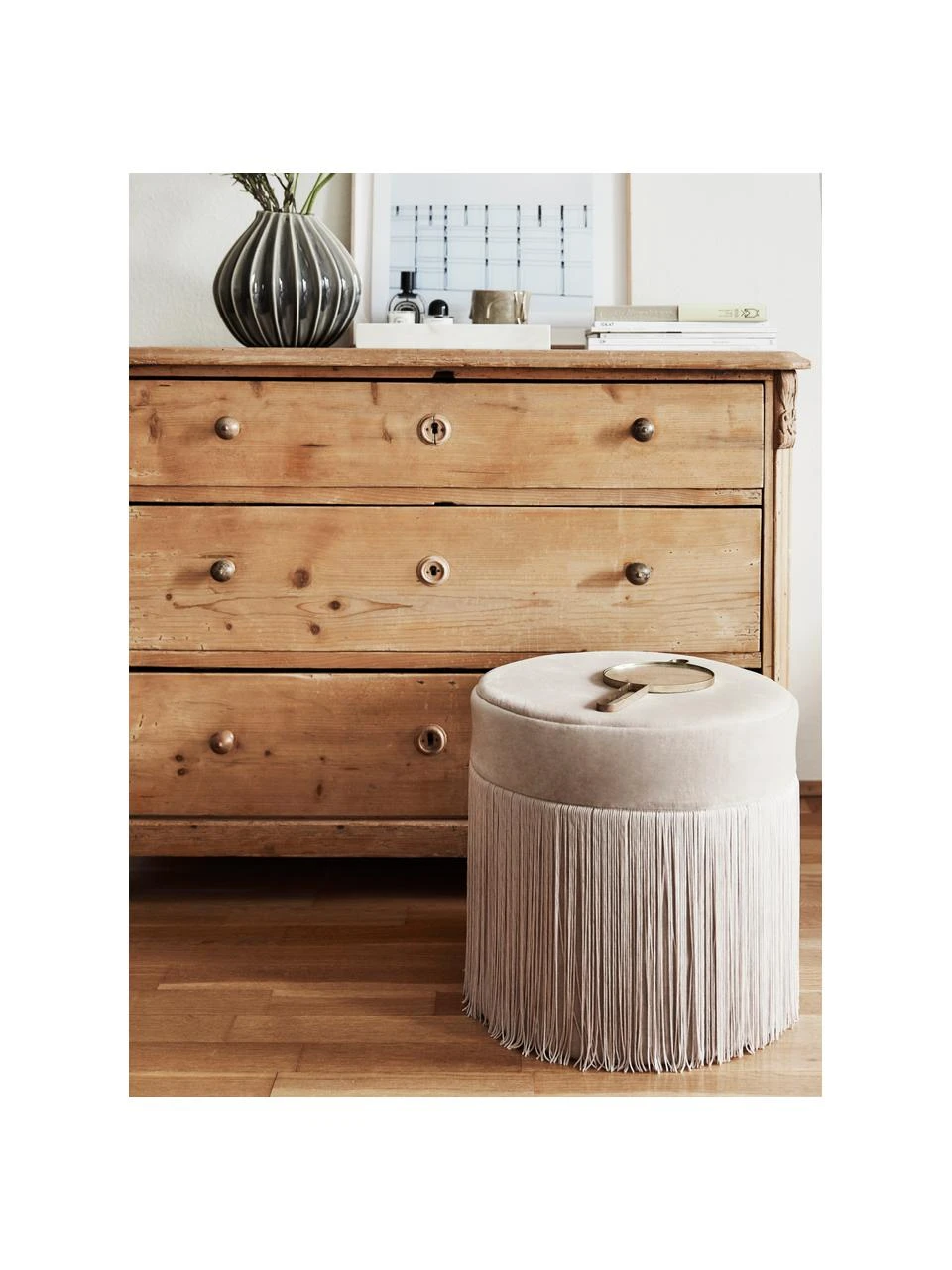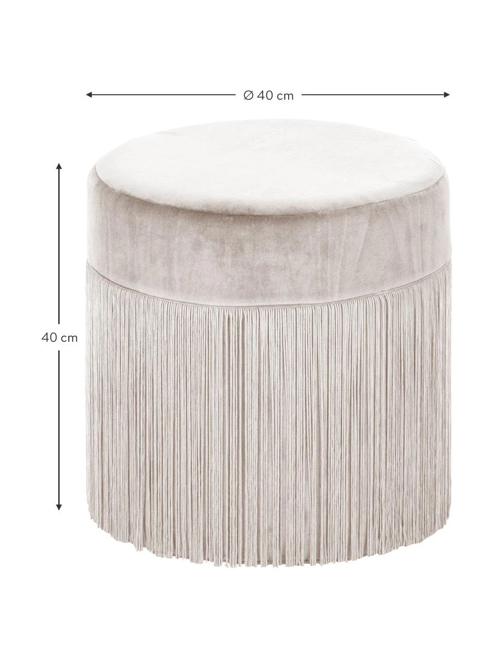 Westwing Collection Pouf à franges en champagne Adriana, ∅ 40 x haut. 40 cm
