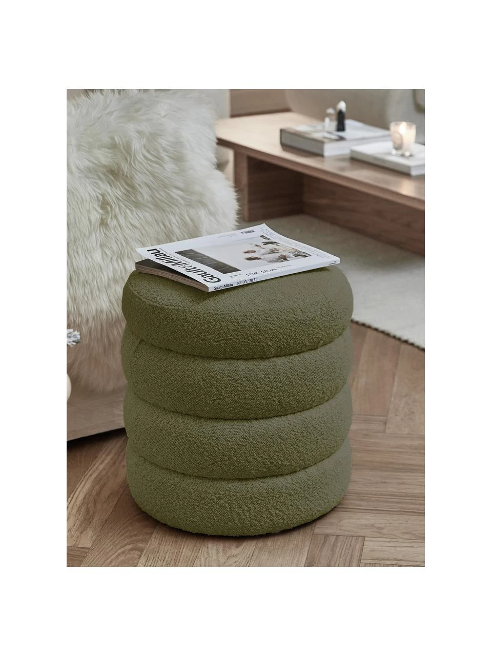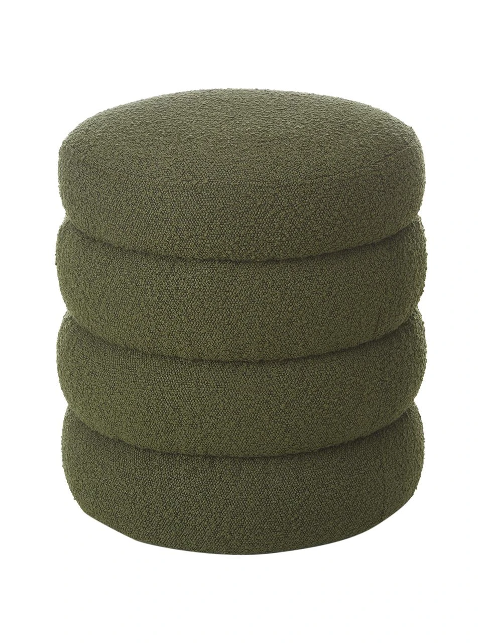 Westwing Collection Tabouret tissu bouclé vert Alto, Ø 42 x haut. 47 cm
